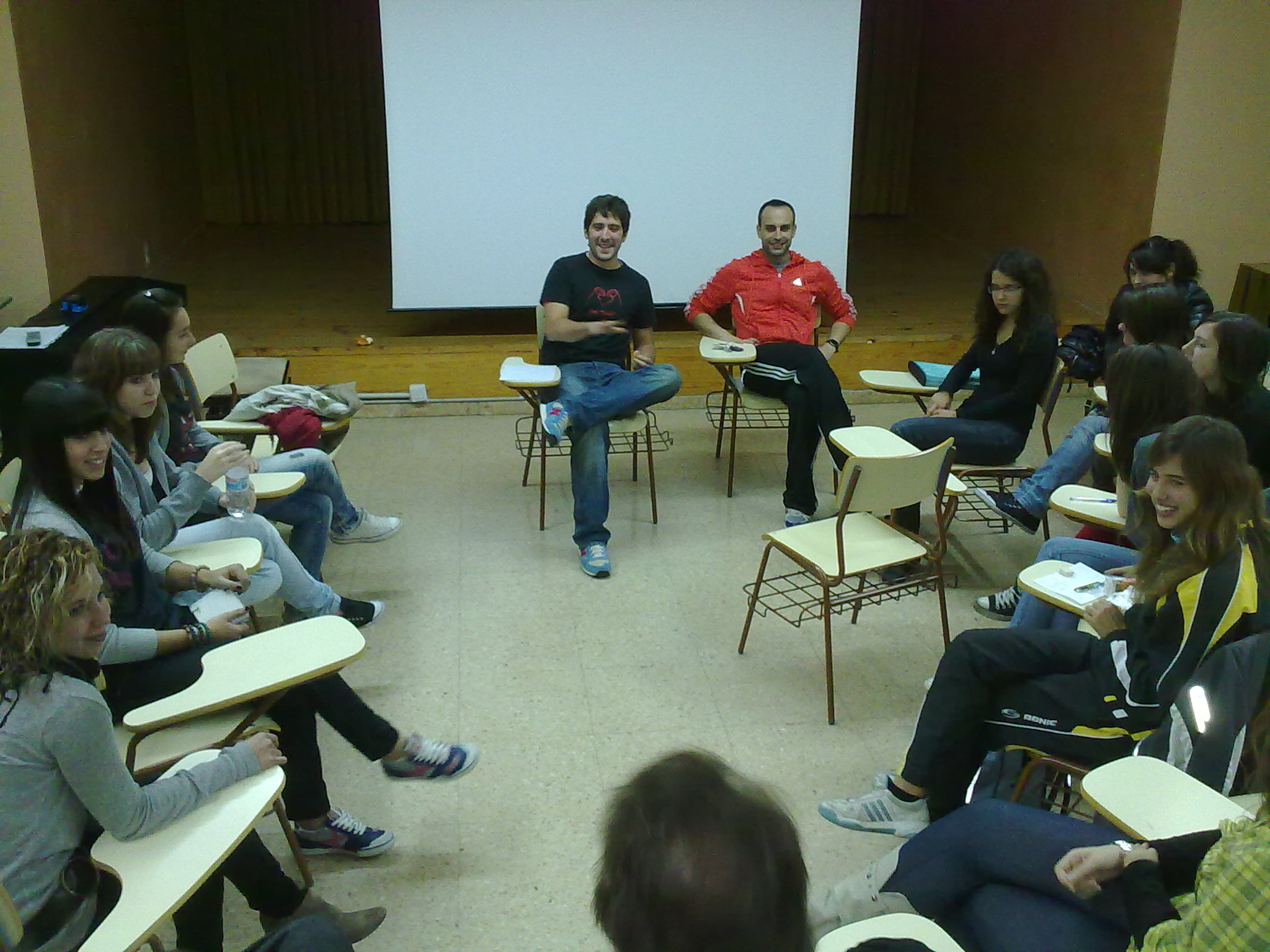 (Alumnos y profesores en el Salón de Usos Múltiples del Instituto tras la proyección de la película)