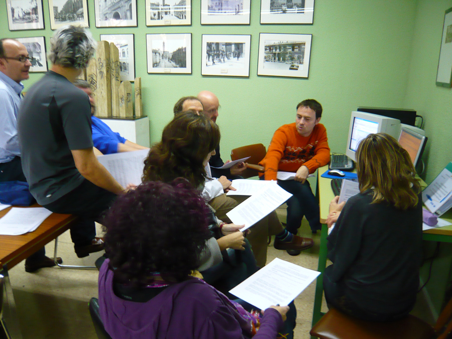 El profesorado del IES Pedro de Luna está recibiendo formación sobre las herramientas que proporciona Google APPS a los centros educativos. En la imagen Carlos Miramón, profesor de Matemáticas y coordinador Escuela 2.o en el Instituto, imparte una sesión sobre el funcionamiento y la utilidad de Google Docs a varios profesores. La formación se lleva a cabo en las horas de reuniones de departamentos.