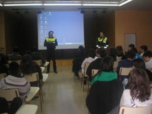 Los agentes de la policía local de Zaragoza, Sergio y Javier, han desarrollado durante tres sesiones un breve pero intenso e interesante curso sobre Educación Vial con los estudiantes de 4º de ESO y PCPI. Es una actividad realizada estos últimos años en el Centro, pensada especialmente para los alumnos y alumnas de esta edad, que no solo son peatones sino también conductores en potencia. Los agentes han dinaminazado esta pequeña “campaña de tráfico” en nuestro centro para los estudiantes, que, como siempre, han prestado especial atención a las explicaciones y, sobre todo, a los testimonios de jóvenes de la Asociación ATECEA.