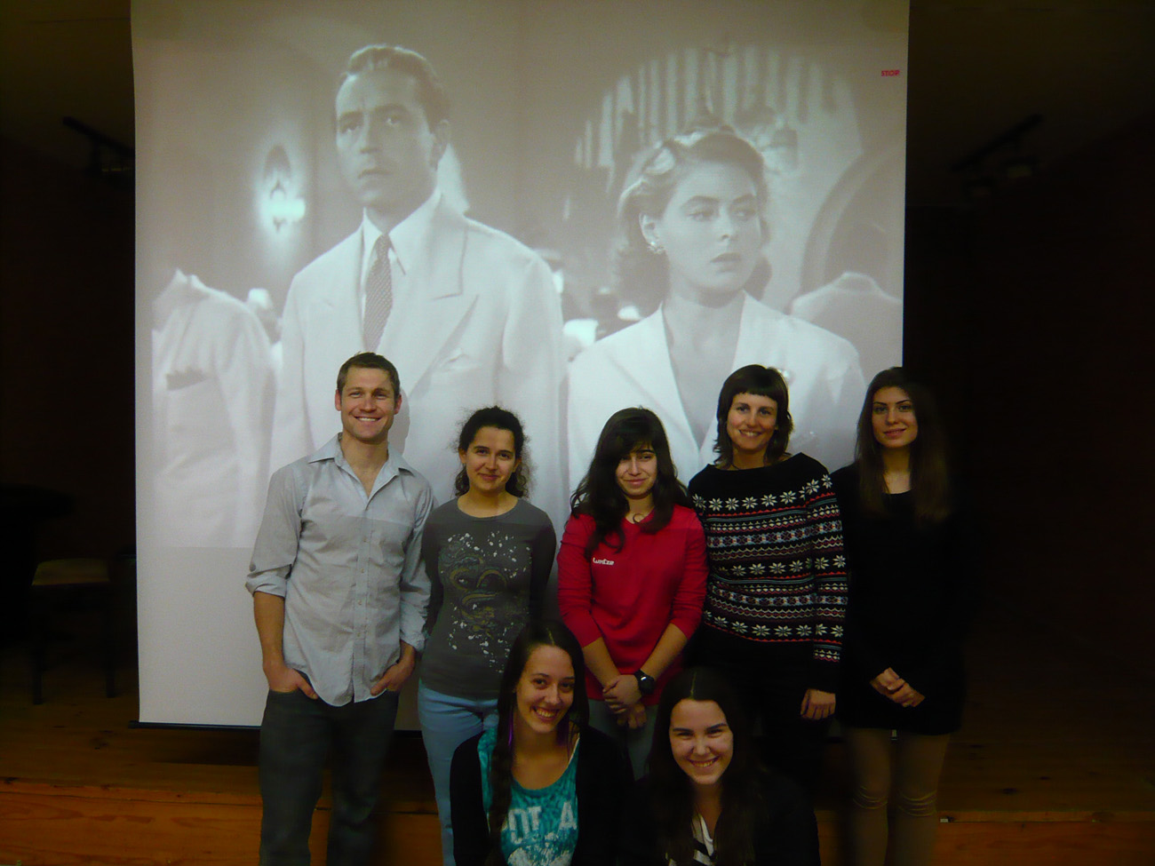 “El pasado jueves 12 de enero por la tarde se retomó en el centro la fantástica costumbre de organizar un cine-forum de vez en cuando. Este curso el Departamento de Inglés pensó que sería una buena idea, ya que el IES Pedro de Luna es centro bilingüe MEC-British Council, pasar películas en inglés y comentarlas después también en inglés, en la medida de lo posible. Entre nuestro profesor visitante de Nebraska James Ballarin y la alumna de 2º de Bachillerato Milagros Arbués montaron el primer cine forum del año, que tuvo como protagonista la película Casablanca. Fue un buen comienzo el ver todo un clasicazo y el debate posterior estuvo muy interesante. En febrero se volverá a proyecta otra película en inglés, pero con subtítulos en castellano, para facilitar el acceso para todos a esta actividad. Quien sabe, este puede ser el comienzo de una hermosa amistad…”