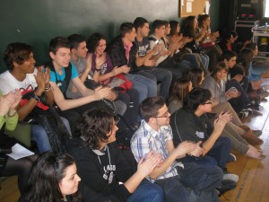 Los alumnos de primero de Artes Escénicas del IES Pedro de Luna han visitado el 27 de marzo, Día Mundial del Teatro, la Escuela Municipal de Teatro de Zaragoza. Ha sido una visita entretenida y dinámica. Tras una breve presentación y explicación sobre el funcionamiento de la escuela -horarios, inscripción, requisitos…- hemos asistido a una proyección sobre las actividades y las clases, y posteriormente hemos visto “en acción” a los alumnos de la Escuela, en cuatro talleres de clases distintas de los tres cursos de la institución. Dos talleres de primer curso, sobre “Cuerpo-Danza” y “Canto-Voz“. Un taller de segundo, sobre “Prácticas de interpretación“. El cuarto taller fue realizado por alumnado de cuarto: “Clown-Teatro en movimiento“. En los dos cursos iniciales, pudimos encontrar antiguos alumnos de nuestro instituto. Les deseamos a todos mucha suerte. Nuestros estudiantes han disfrutado mucho, reconociendo también al alumnado que protagonizó el Sueño de una noche de verano, y viéndolos en su faceta de formación y experimentación.