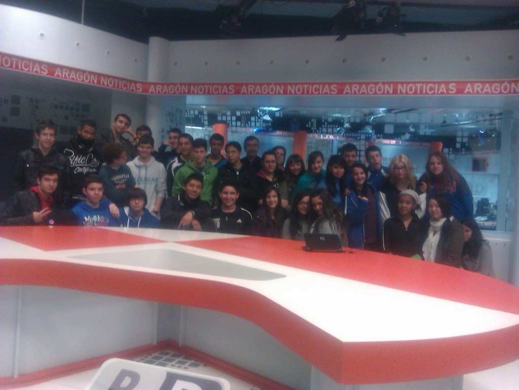 “Un grupo de alumnos de 3º de ESO hemos visitado las instalaciones de la Corporación Aragonesa de Radio y Televisión. Nos han explicado qué  es un redactor, un editor, productor, maquillador y cómo es su trabajo. Hemos podido ver sus instalaciones y hemos entrado en los estudios de la radio, en el plató del informativo y en los platós donde se realizan los programas en directo. Hemos comprendido que el trabajo, que pensábamos fácil, es también muy duro, complicado y agobiante, pero a la vez, interesante. Ha sido una gran experiencia.”