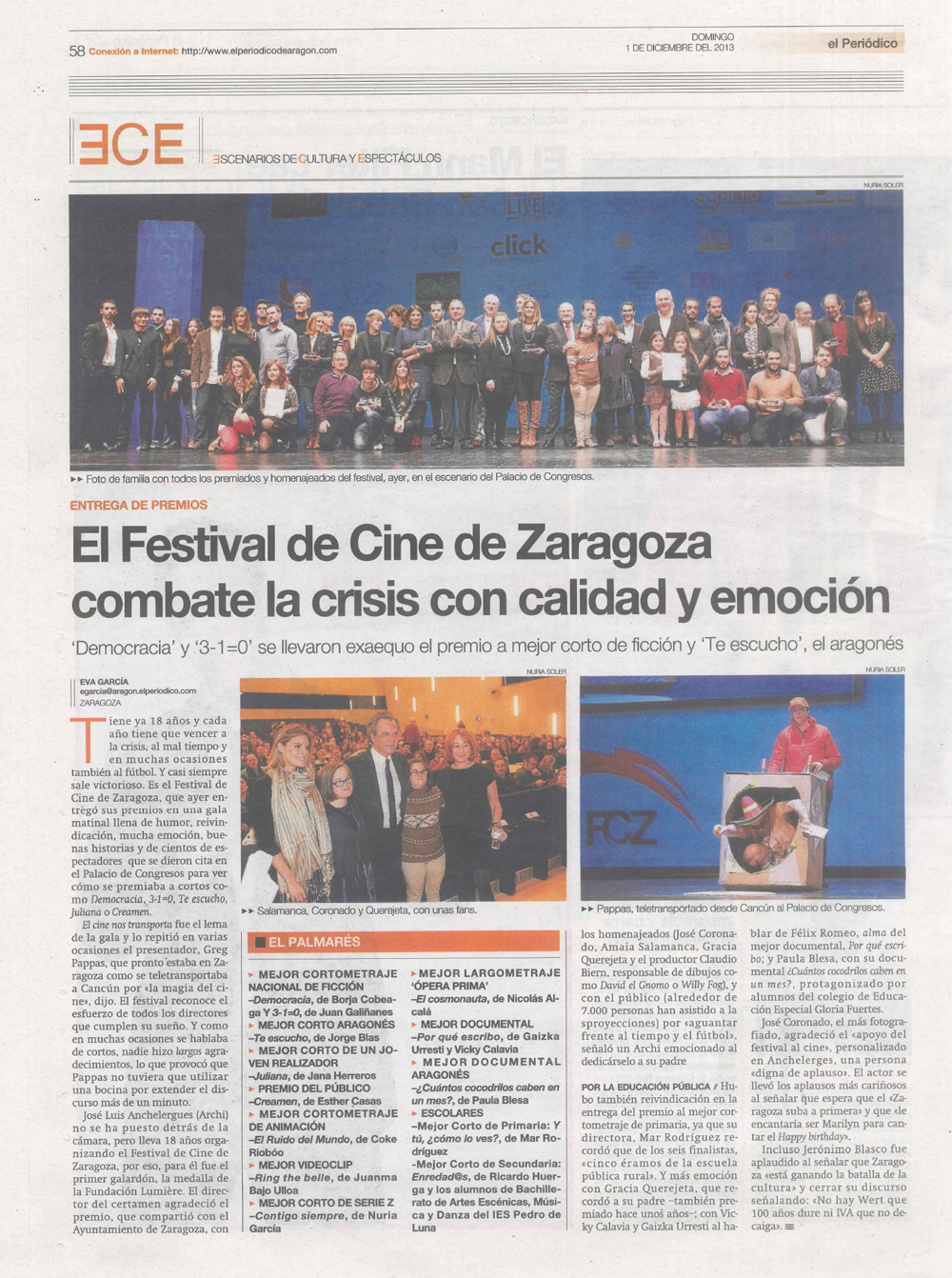 El Heraldo de Aragón y el Periódico de Aragón recogieron la noticia en su número del 13 de diciembre de 2013.