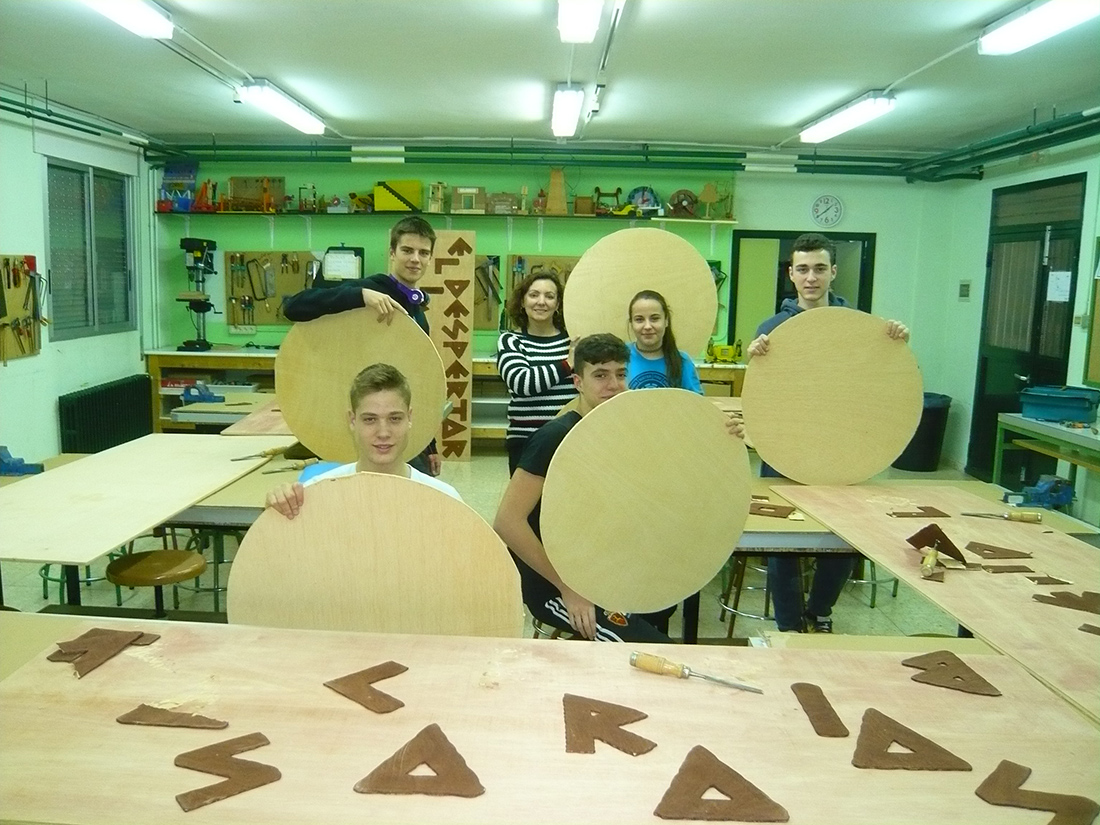 Mientras parte del alumnado participaba en el intercambio con Suecia, los que se han quedado han dibujado y cortado los dos modelos de escudos. Ahora que ya estamos todos dedicaremos unos días más para fresar, lijar, pulir, pintar y montar los escudos troyanos y ya estarán listos para la actuación.
