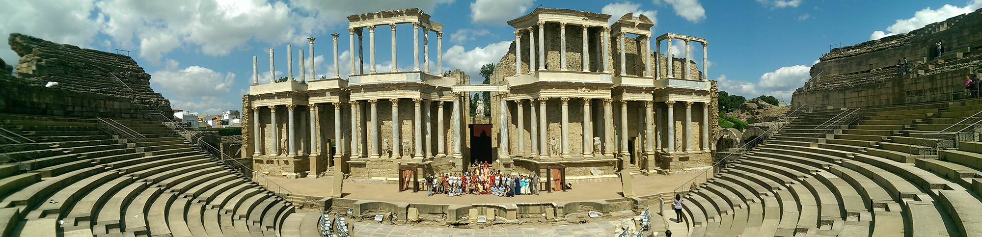 Las fotografías panorámicas de Juan Gracia, muestran a la compañía “Clásicos Luna”, en los Teatros de Mérida y Sagunto al finalizar las representaciones.