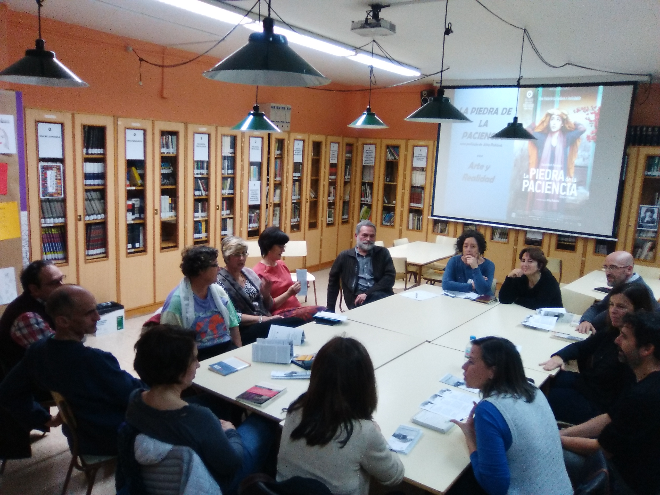 Muchos temas salieron a colación: el papel de la mujer en la sociedad, en esa cultura, y sus diferencias con el del hombre; influencia de la religión en las relaciones entre las personas y en la política. Se señaló la importancia de lo visual en la narración, y el hecho de que el autor se mueva en ambos campos. Muchos de los asistentes habían visto la película homónima, obra del mismo autor, Atiq Rahimi, e iluminaron las diferencias de resolución de algunos de las situaciones que se plantean en el libro. Muy interesante es cómo vemos transcurrir el tiempo jalonado por los rituales del rezo, las curas al marido yacente, las llamadas a la oración desde el minarete o las del aguador en las calles, las visitas del mulá.