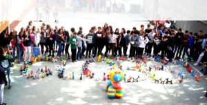Todos los alumnos de la ESO pudieron exponer en el patio de 1º de ESO el trabajo realizado previamente en clase de Plástica.