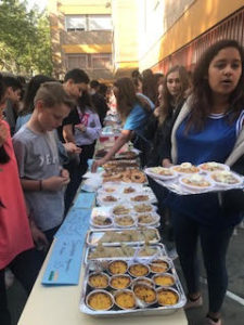 Decenas de alumnos de la ESO pusieron a la venta sus elaboraciones por el módico precio de 20 céntimos la ración. Todo el dinero recaudado se destino a una ONG de ayuda a refugiados.