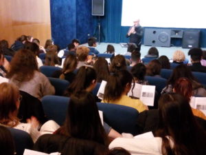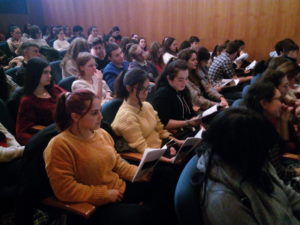 Gracias al programa UN DÍA DE CINE, los estudiantes de primero de Bachillerato de Artes han conocido la Filmoteca, aunque algunos de ellos ya la habían visitado precisamente con el profesorado de “Historia”, para el visionado de “Sufragistas”. En el día de hoy, e iniciando las sesiones con “Cultura Audiovisual”, hemos asistido a la proyección de cuatro cortos realizados por los alumnos del último curso de las principales Escuelas de Cinematografía de España, la de Madrid (ECAM) y la de Barcelona (ESCAC). “Replicantes”, “Con la boca cerrada”, “Elegía” y “24:37”, han sido los cuatro títulos que nuestros estudiantes han visionado y sobre los que han reflexionado, siguiendo los objetivos de alfabetización audiovisual y crecimiento personal. Especialmente hay que mencionar el primero, porque el coordinador del programa. Ángel Gonzalvo, lo había seleccionado pensando en nuestros estudiantes, los del Pedro de Luna, aunque todas las películas han resultado interesantes, y Ángel ha ayudado a profundizar en ellas. Seguiremos informando.