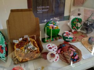 Una tarta de gominolas, una bola de poliespán, una caja vacía, lentejas, macarrones, cartones, cartulinas y hasta una auténtica pizza… todo puede ser útil para representar en una maqueta La