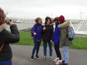 “Pese a que el clima no nos está acompañando porque hace bastante viento y lluvia, los participantes en el intercambio de 3º de ESO están disfrutando mucho y visitando cosas muy interesantes como el sistema educativo holandés, la propia ciudad de Maassluis, el gigantesco canal de Rotterdam con los sistemas de defensa ante las tormentas del mar del Norte y la ciudad de Delf, donde no sólo hemos disfrutado de su encantador centro histórico, sino que hemos aprendido sobre el pintor Vermeer.