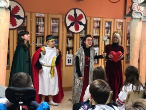 Para los alumnos de 6º preparamos cinco talleres: en el de Geografía e Historia participaron en una animada versión del concurso Who Wants to be a Millionaire; en el de inglés hicieron juegos con Kyla, nuestra profesora auxiliar de conversación; los actores de Clásicos Luna nos transportaron al Olimpo de los Dioses con sus celos, amoríos y sus riñas; en el taller de Música los alumnos hicieron percusión corporal con un fragmento de la Marcha Radetzky; y en el taller de Ciencias Naturales realizaron sorprendentes experimentos de laboratorio.