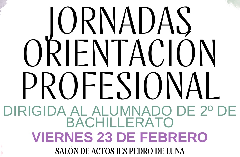 El próximo 23 de febrero el alumnado de 2º bachillerato celebrará en el Salón de Actos del Instituto unas Jornadas de Orientación Profesional.