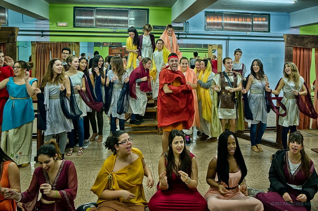 Esta puesta en escena de “Miles gloriosus” forma parte del proyecto educativo de nuestro centro escolar “Clásicos Luna”, que se inició en el año 2002, y que sigue adelante gracias al apoyo y al trabajo colectivo de profesores, alumnos, padres, personal no docente y antiguos alumnos. Los ensayos teatrales se realizan los lunes por la tarde en la Ludoteca del Edificio B y están dirigidos por los antiguos alumnos de “Teatro La Clac”. En este cuidado reportaje fotográfico del profesor Ricardo Huerga os mostramos el último ensayo general de la compañía teatral, en el que se puede apreciar el buen ambiente de esfuerzo y trabajo de los alumnos-actores, que está detrás, y hace posible, la actuación en el Teatro Principal, y en las futuras representaciones en los Teatros Romanos de Mérida y Sagunto.