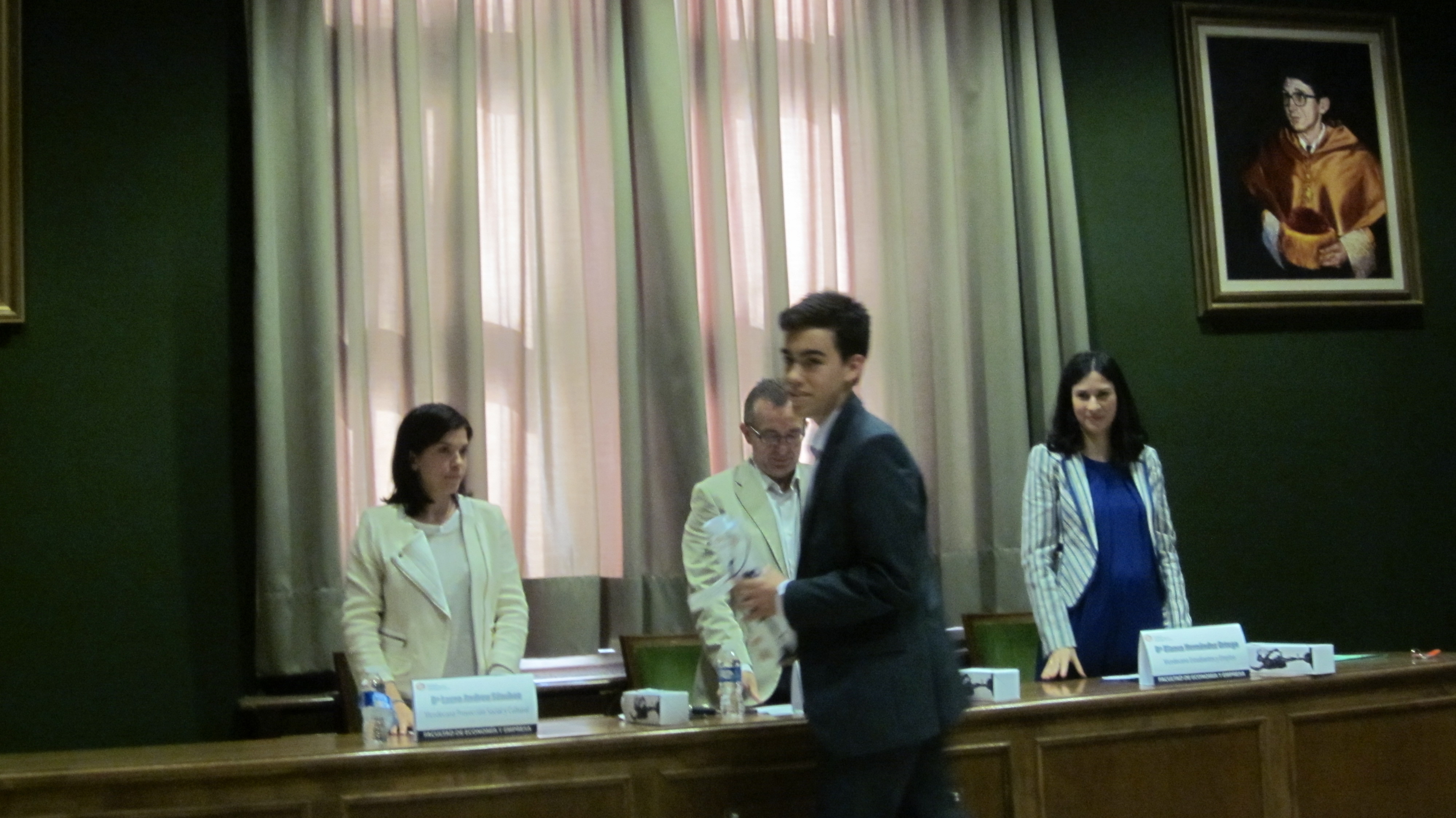 Fotografías de la entrega de premios por el Decano D. Alberto Molina, en el Salón de Grados de la Facultad de Economía y Empresa el lunes 25 de mayo.