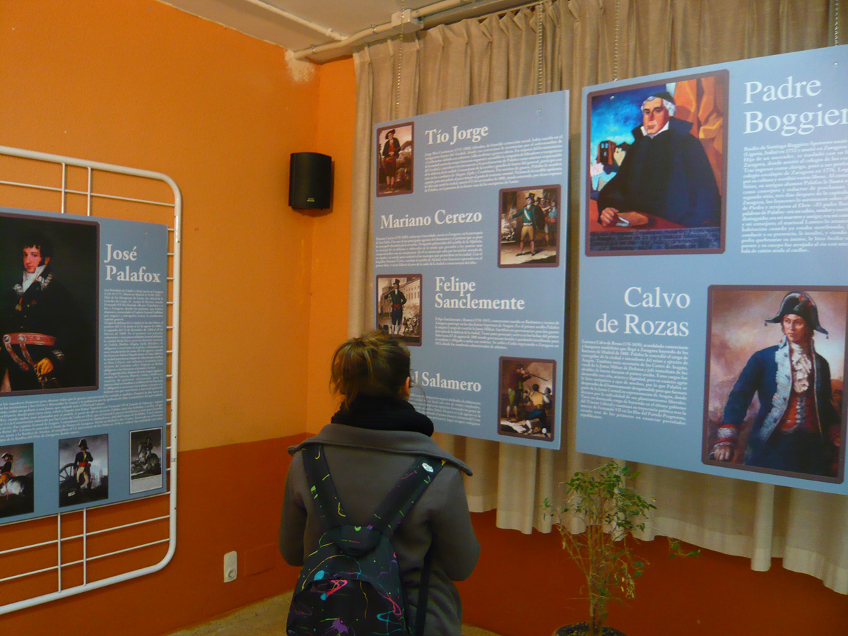 Los alumnos de 4º de ESO, y bachillerato realizarán actividades didácticas, en la asignatura de Ciencias Sociales, sobre los paneles expositivos que se muestran sobre: “Personajes y héroes de la defensa de Zaragoza (que dan nombres a muchas calles del centro de Zaragoza)”, “Generales franceses”, “Los dos Sitios de Zaragoza 1808-09”, “Zaragoza antes de la Guerra”, “Proyecto de organización administrativa francesa para Aragón (Primer proyecto de provincias)”. La exposición también ofrece al visitante 2 expositores con libros referidos al tema, “Grabados de Zaragoza tras los Sitios” y grabados de Goya sobre “Los desastres de la guerra”.