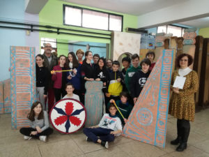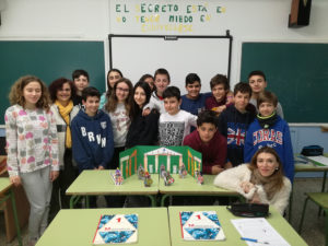 Alumnos de 1º B y D de ESO, en la asignatura de “Matemáticas” están estudiando una unidad didáctica sobre proporcionalidad y porcentajes preparando una maqueta de la escenografía que utiliza “Clásicos Luna”, la compañía teatal del IES Pedro de Luna, en la representación de la Ilíada y la Odisea.
