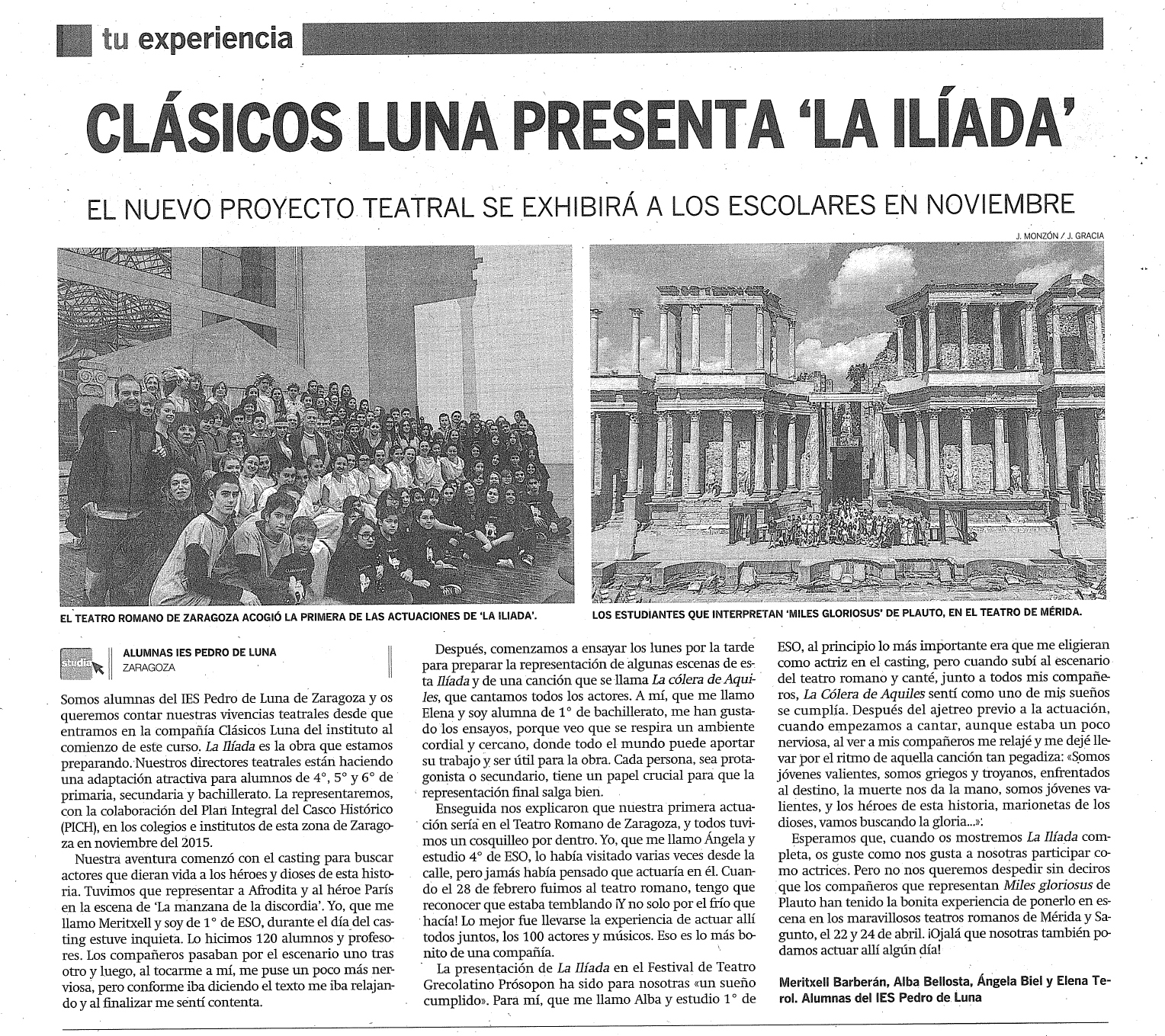 El corto “Una Historia de Ruido” realizado por los alumnos de cultura audiovisual de primero de bachillerato C1, que recientemente ganó el primer premio de la categoría “Nuevos Jóvenes” y el premio especial del público del certamen de Cine y Salud 2015, ha aparecido en la sección de cine de la revista digital “El Pollo Urbano”.